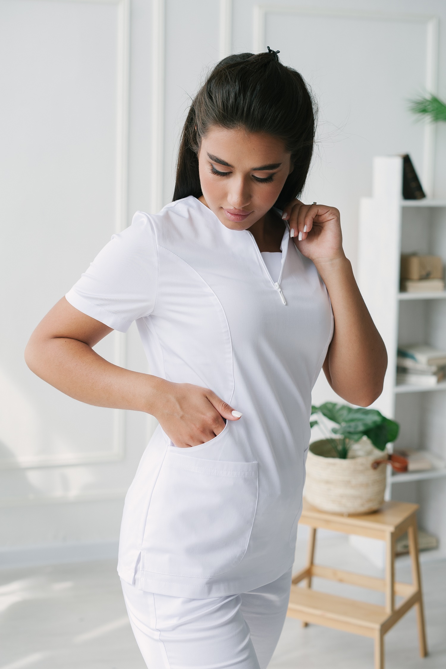 Вырез с молнией контрастного цвета создает яркий декоративный акцент.