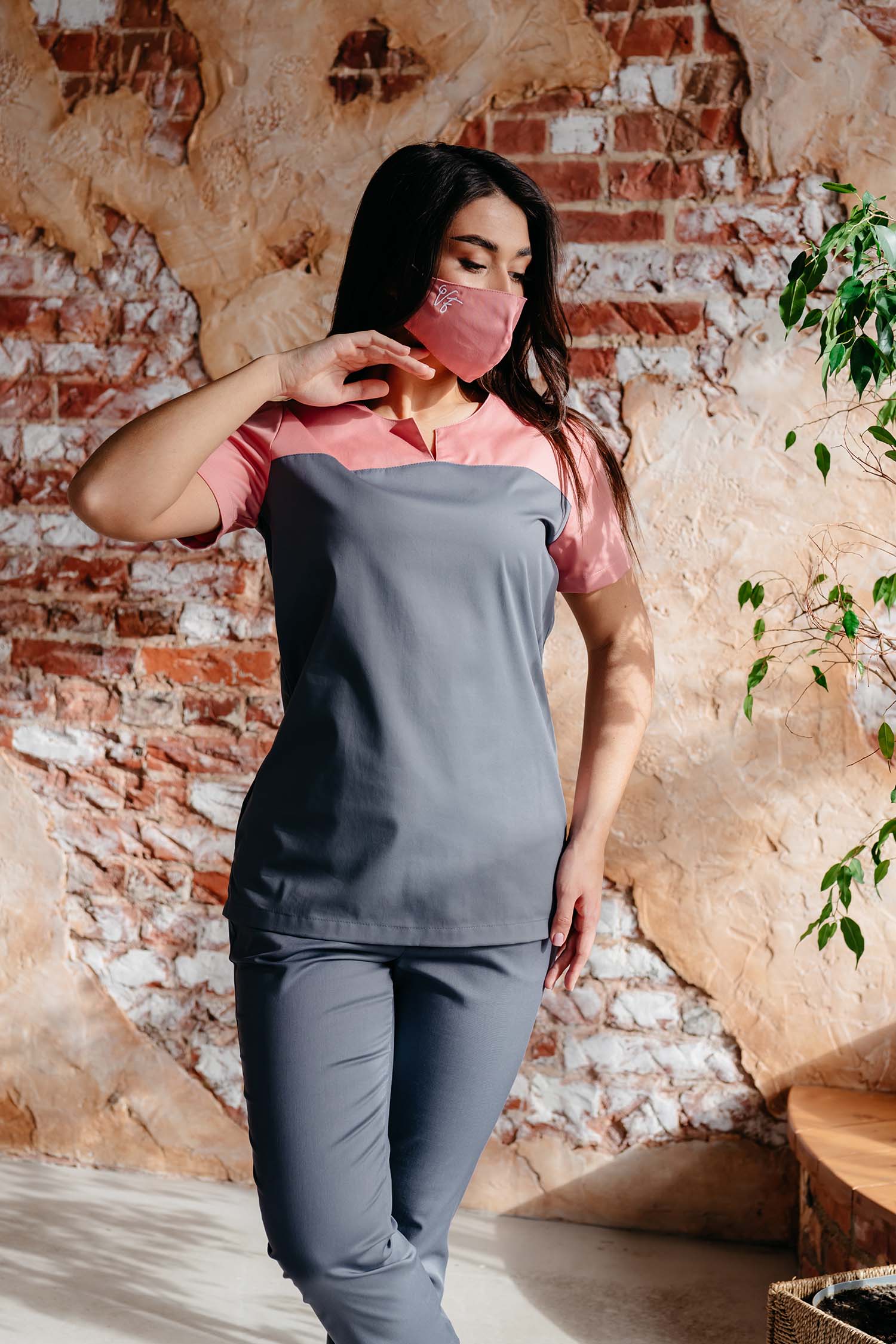 Базовый хирургический топ полуприлегающего силуэта с небольшим декоративным V-вырезом