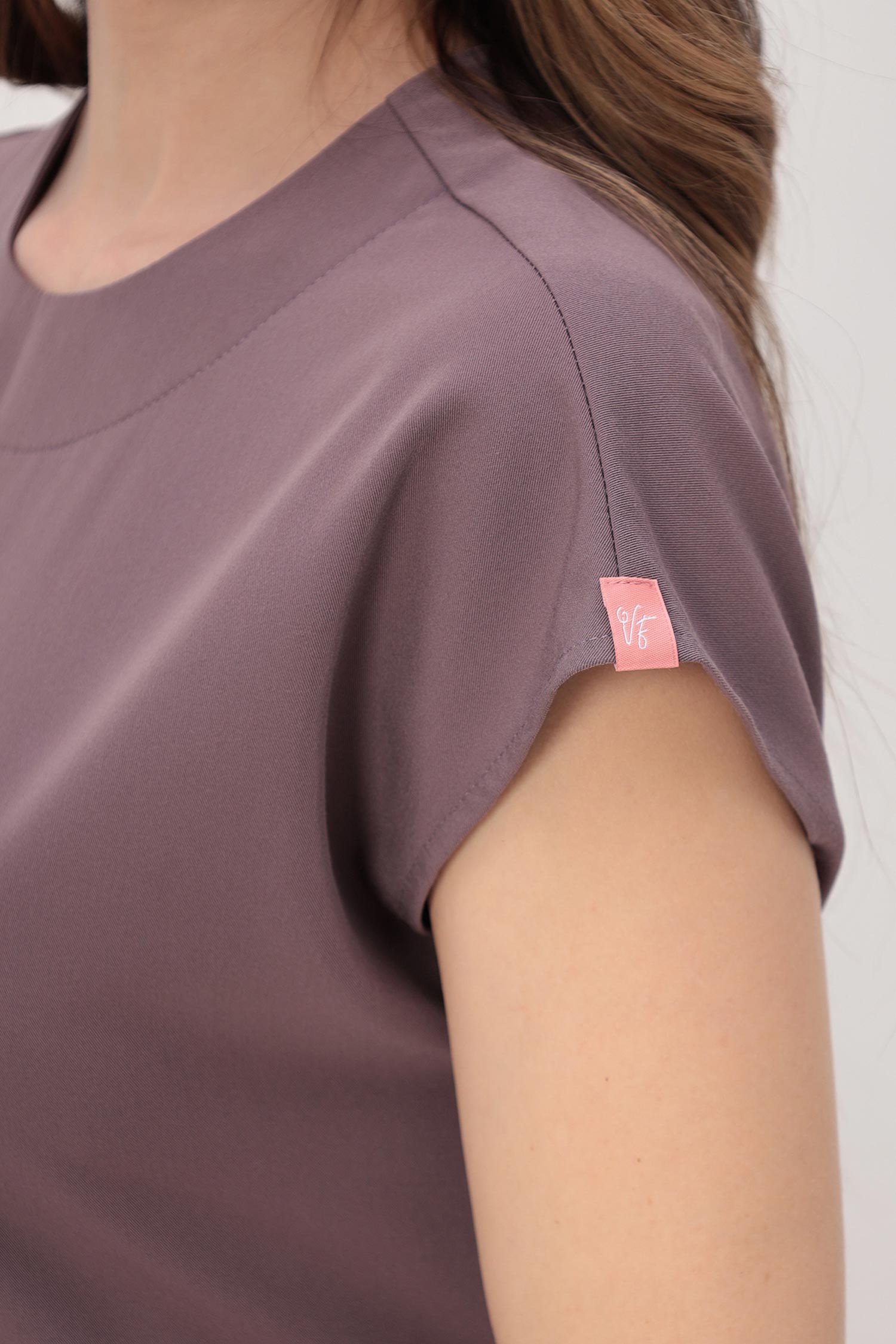 Медицинская блуза прямого, чуть прилегающего силуэта с коротким цельнокроеным рукавом и широким втачным поясом-бантом, который завязывается как спереди, так и сзади. Застежка в среднем шве спинки на петлю и пуговицу. Карманы в боковых швах настрочены, поэтому не сминаются в процессе носки.