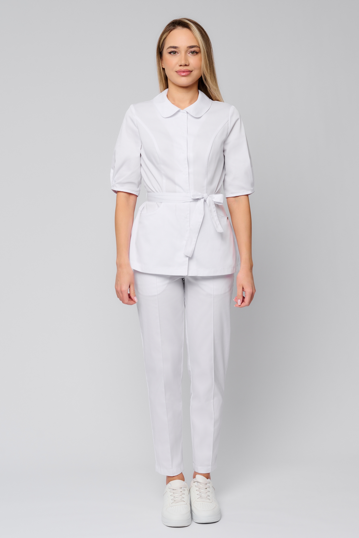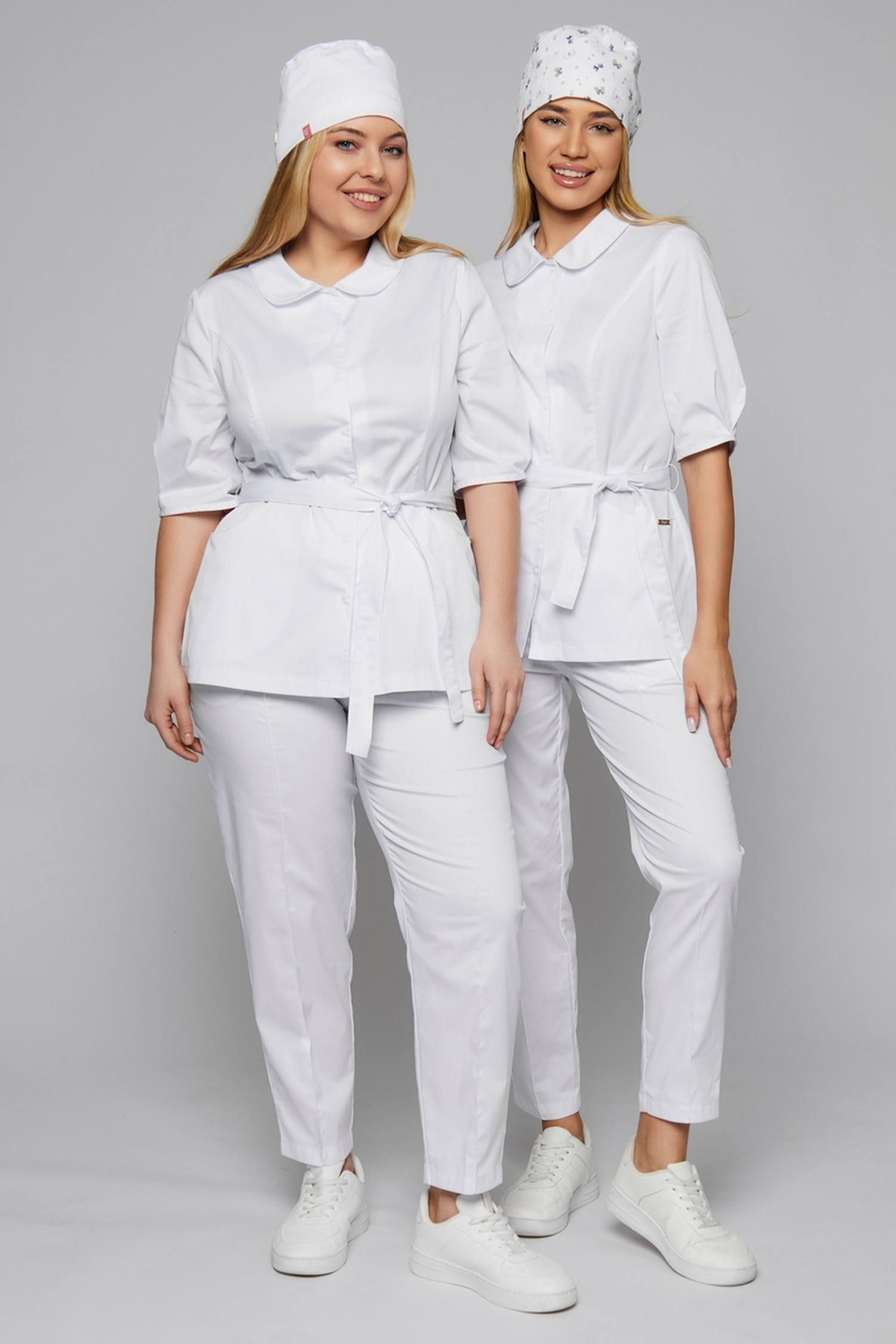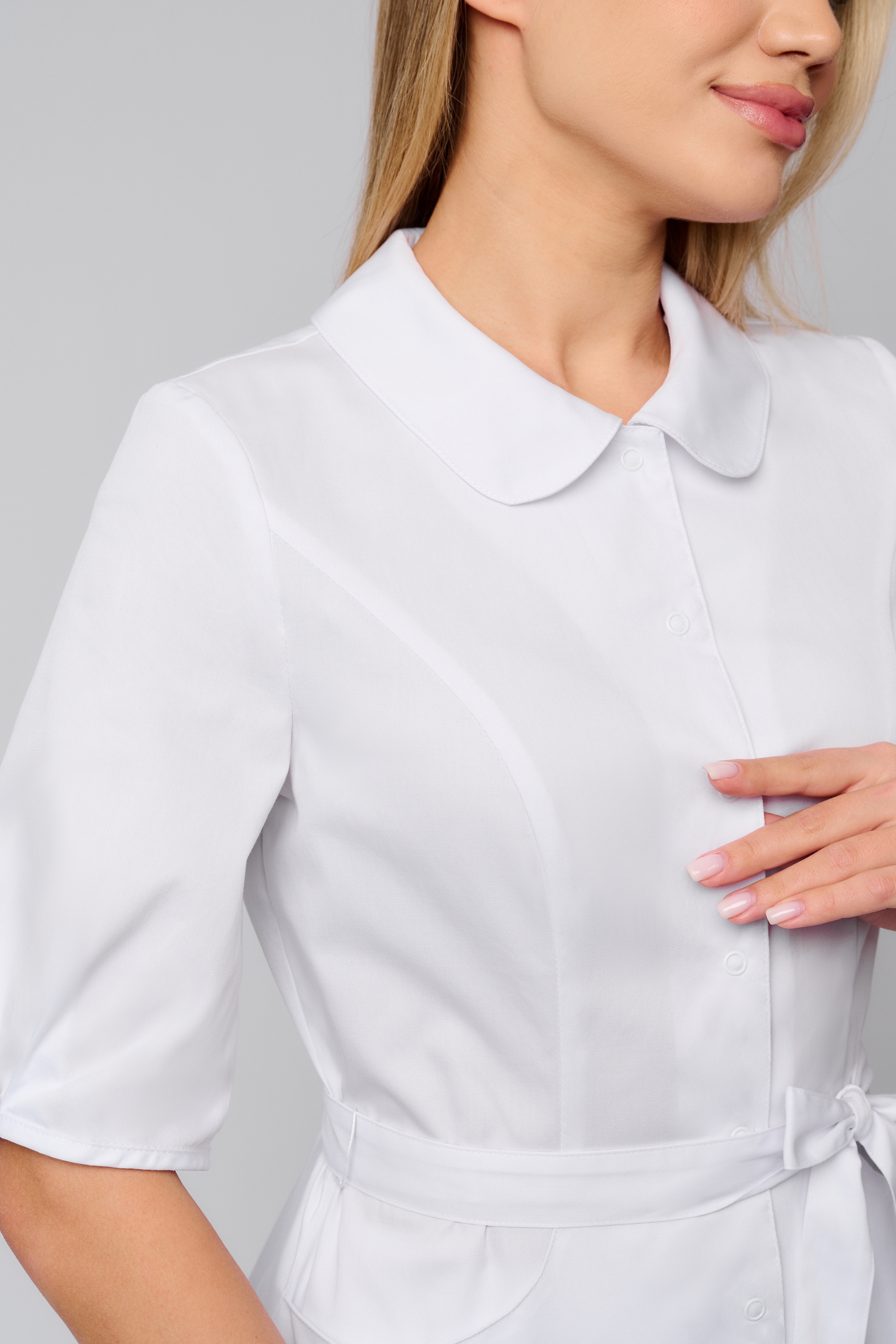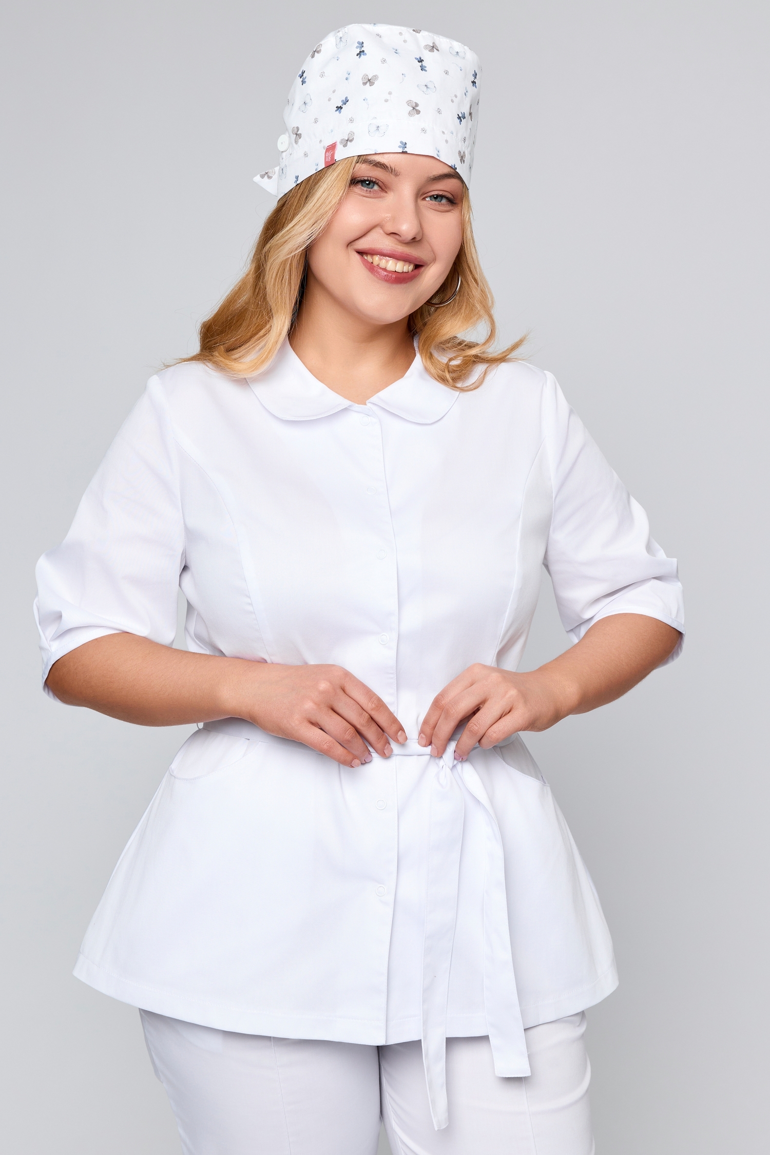 Интерпретация стиля New Look с акцентом на талии и широкой баской Элегантная блуза полуприлегающего силуэта, отрезная по талии, рукав до локтевого сгиба. Удобные глубокие карманы расположены чуть ниже уровня талии. Шлевки в боковом шве позволяют регулировать положение пояса: опускать пояс ниже или выше.