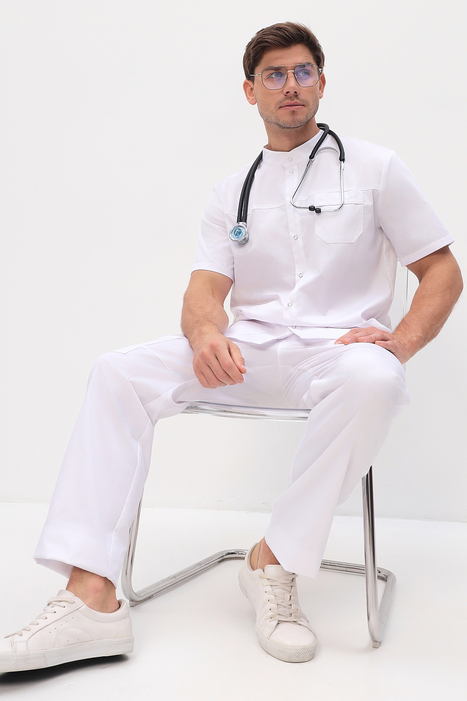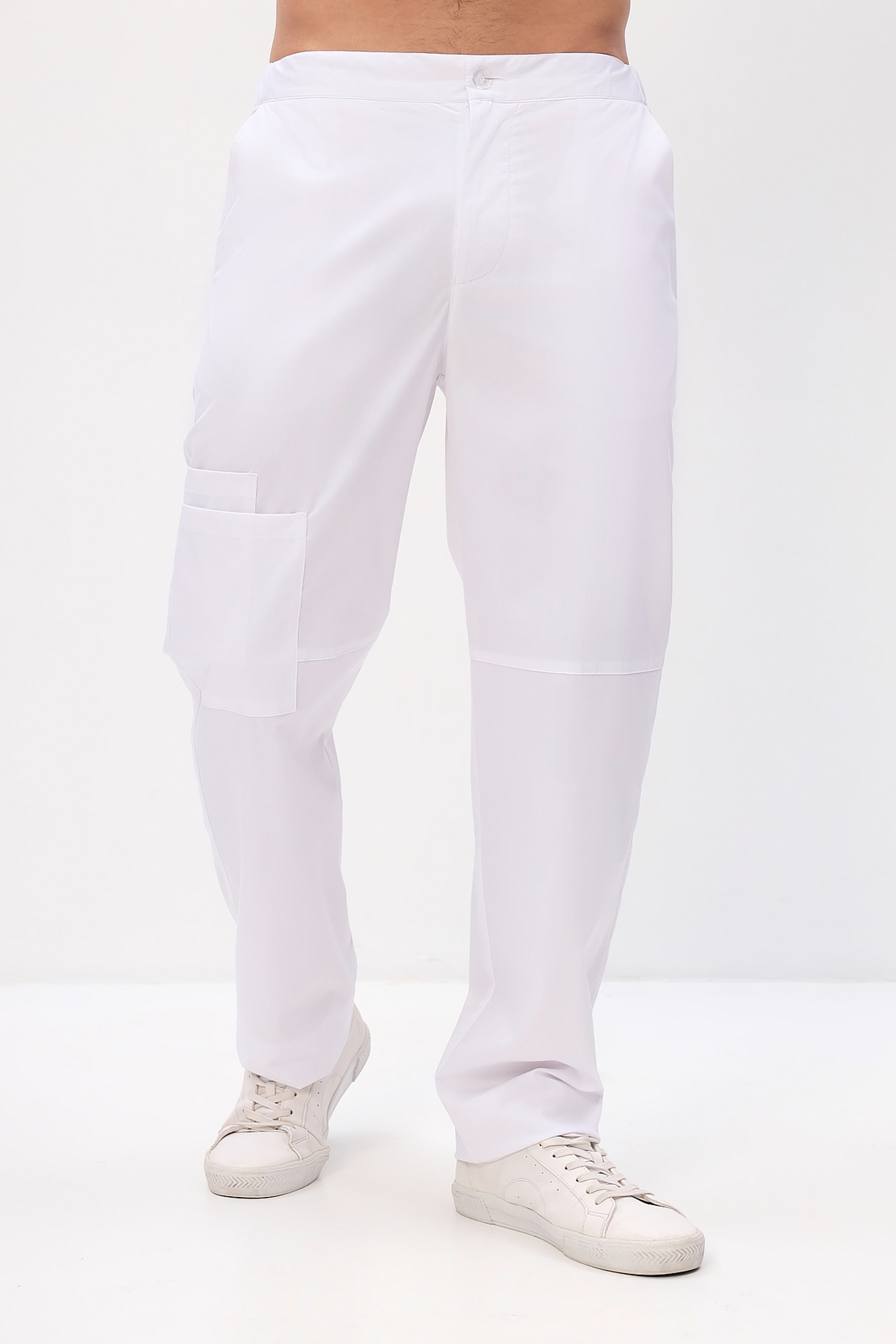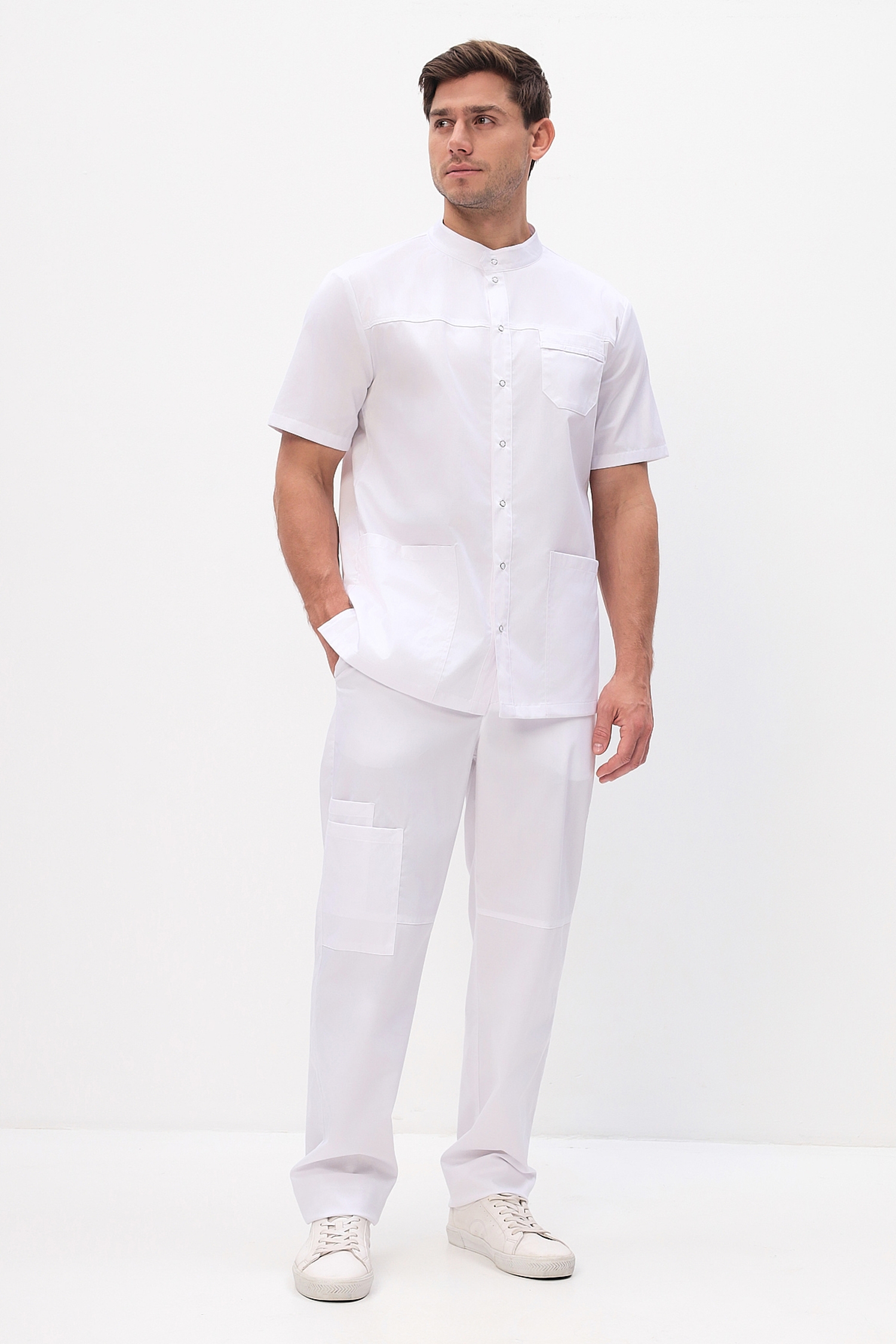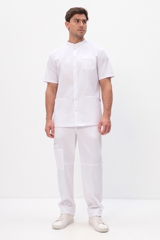 Функциональные мужские медицинские брюки прямого кроя с застежкой на молнию и пуговицу, задняя часть пояса дополнительно стянута эластичной тесьмой (резинка).