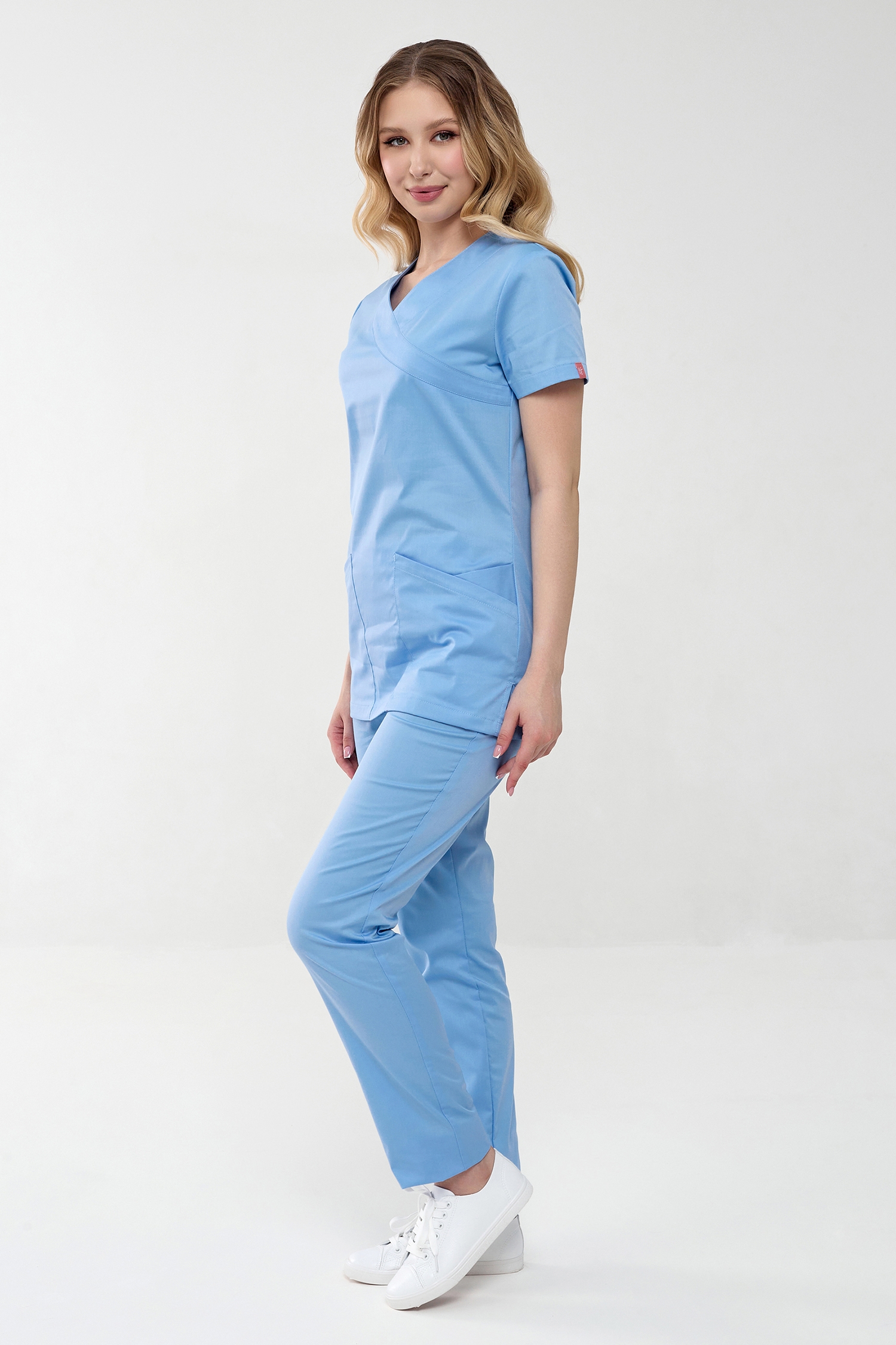 Классические зауженные к низу брюки со средней посадкой, универсальные, сочетаются с любыми хирургическими топами, блузами, халатами.