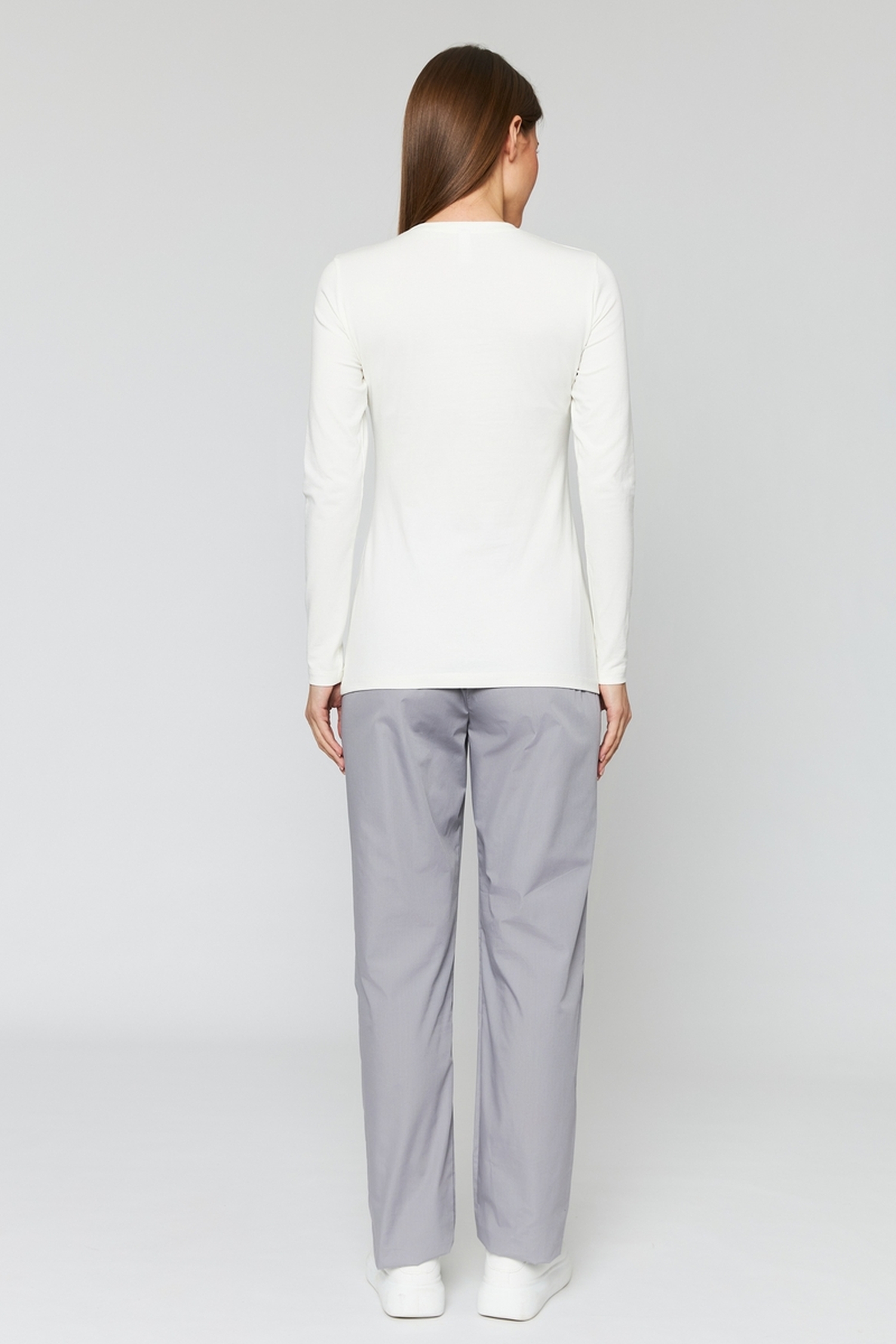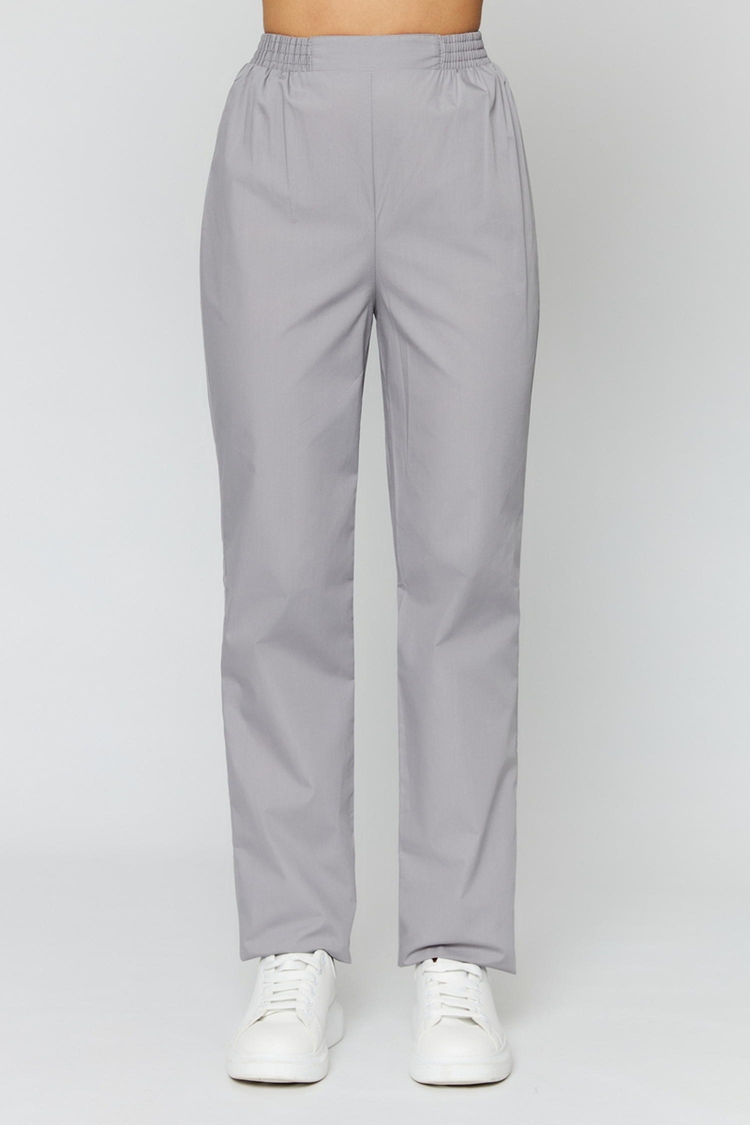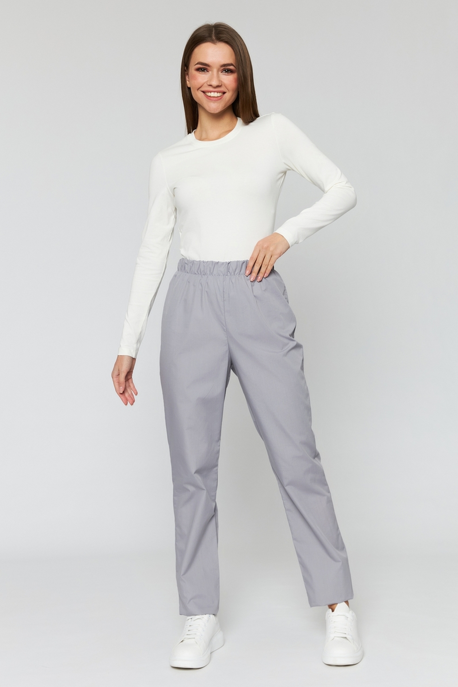 Базовые медицинские брюки современного кроя. Слегка заужены к низу, комфортные за счет оптимальных прибавок на свободу облегания. Пояс на резинке.