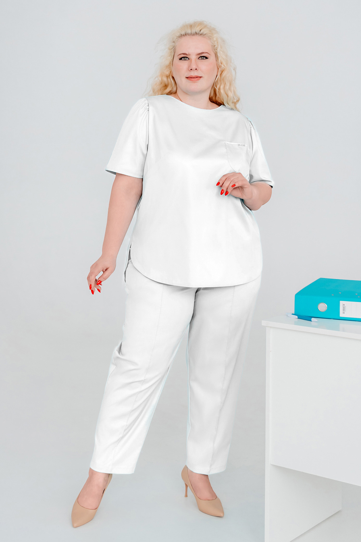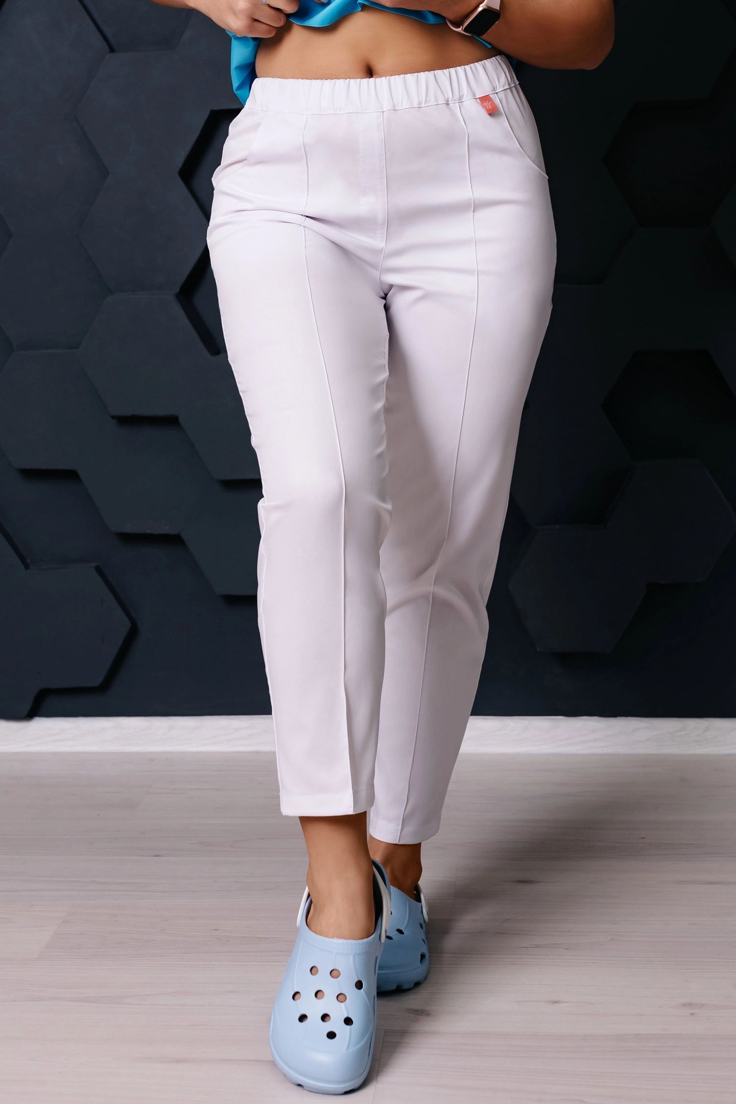 Брюки средней посадки, укороченные и зауженные к низу - силуэт TAPERED FIT. Пояс на резинке. Аккуратные но вместительные «французские» карманы, которые плотно прилегают и не оттопыриваются. Отстроченные спереди стрелки, благодаря которым сохраняется форма брюк. Универсальные, сочетаются с любыми блузами и халатами линейки ADVA