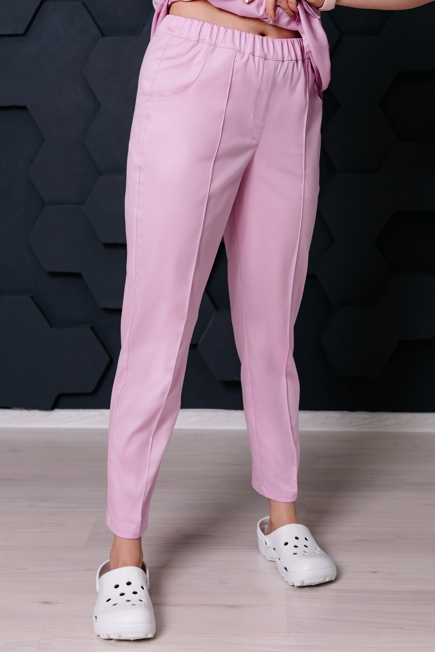 Брюки средней посадки, укороченные и зауженные к низу - силуэт TAPERED FIT. Пояс на резинке. Аккуратные но вместительные «французские» карманы, которые плотно прилегают и не оттопыриваются. Отстроченные спереди стрелки, благодаря которым сохраняется форма брюк. Универсальные, сочетаются с любыми блузами и халатами линейки ADVA