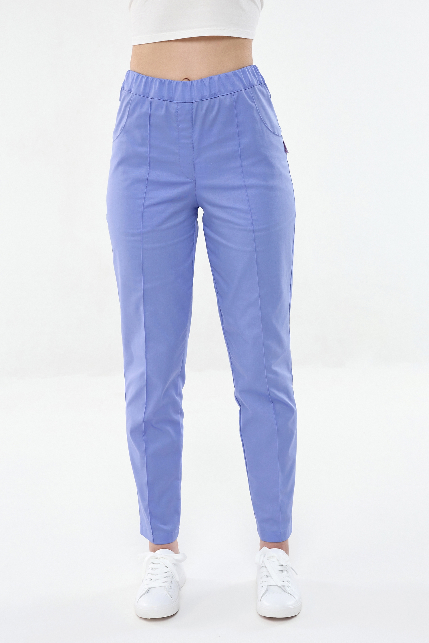 Брюки средней посадки, укороченные и зауженные к низу - силуэт TAPERED FIT. Пояс на резинке. Аккуратные но вместительные «французские» карманы, которые плотно прилегают и не оттопыриваются. Отстроченные спереди стрелки, благодаря которым сохраняется форма брюк. Универсальные, сочетаются с любыми блузами и халатами линейки ADVA