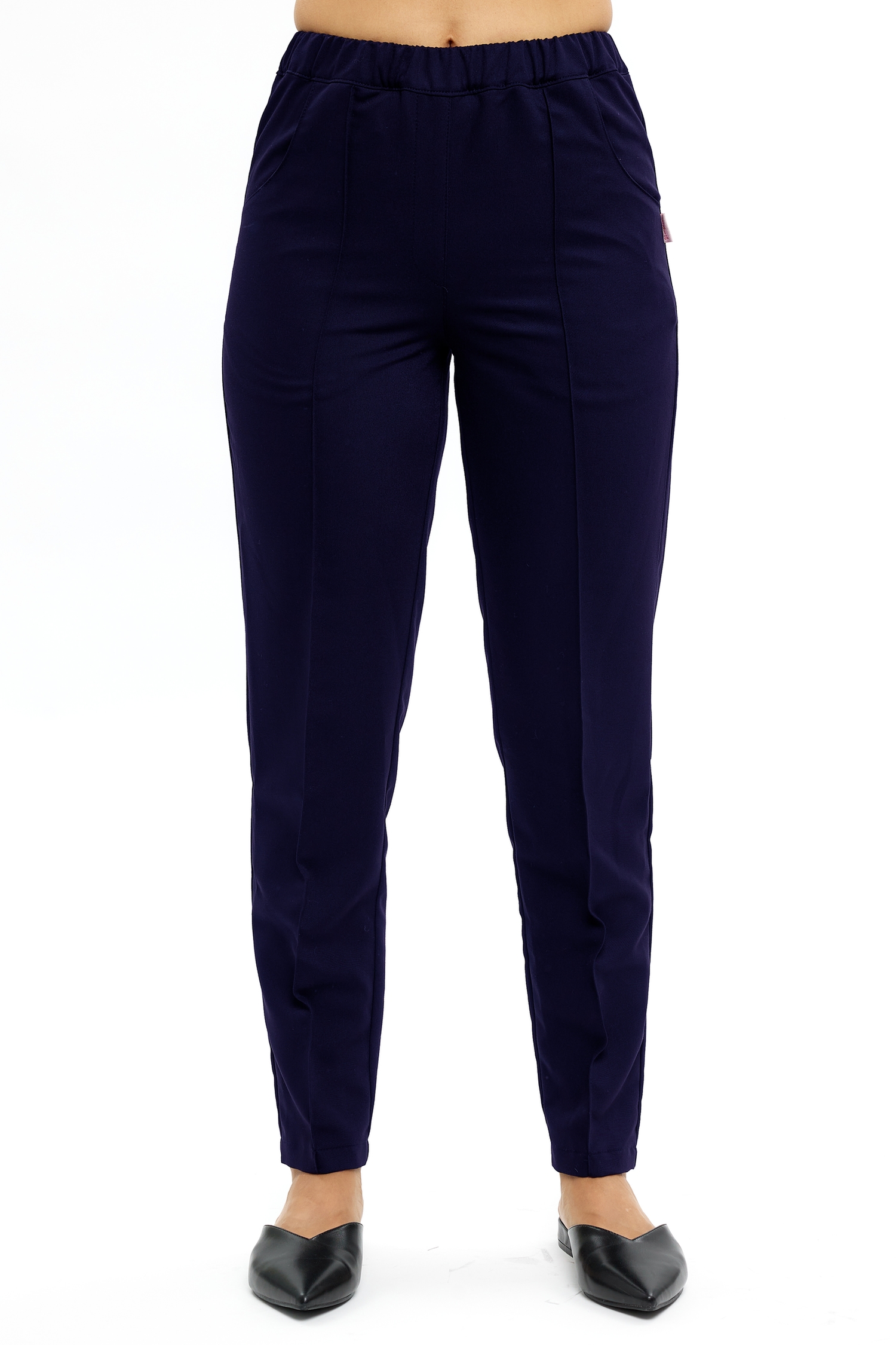 Брюки средней посадки, укороченные и зауженные к низу - силуэт TAPERED FIT. Пояс на резинке. Аккуратные но вместительные «французские» карманы, которые плотно прилегают и не оттопыриваются. Отстроченные спереди стрелки, благодаря которым сохраняется форма брюк. Универсальные, сочетаются с любыми блузами и халатами линейки ADVA