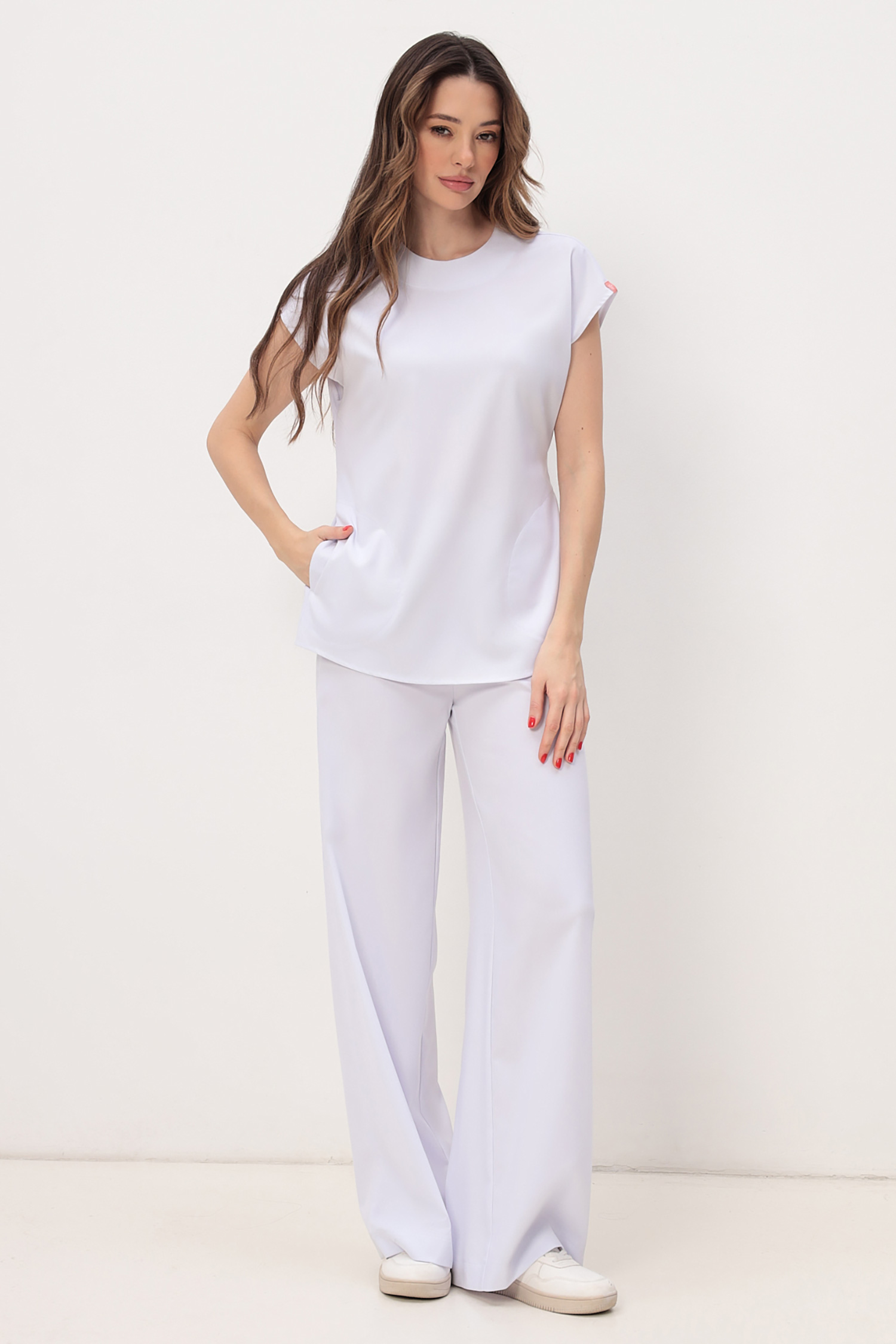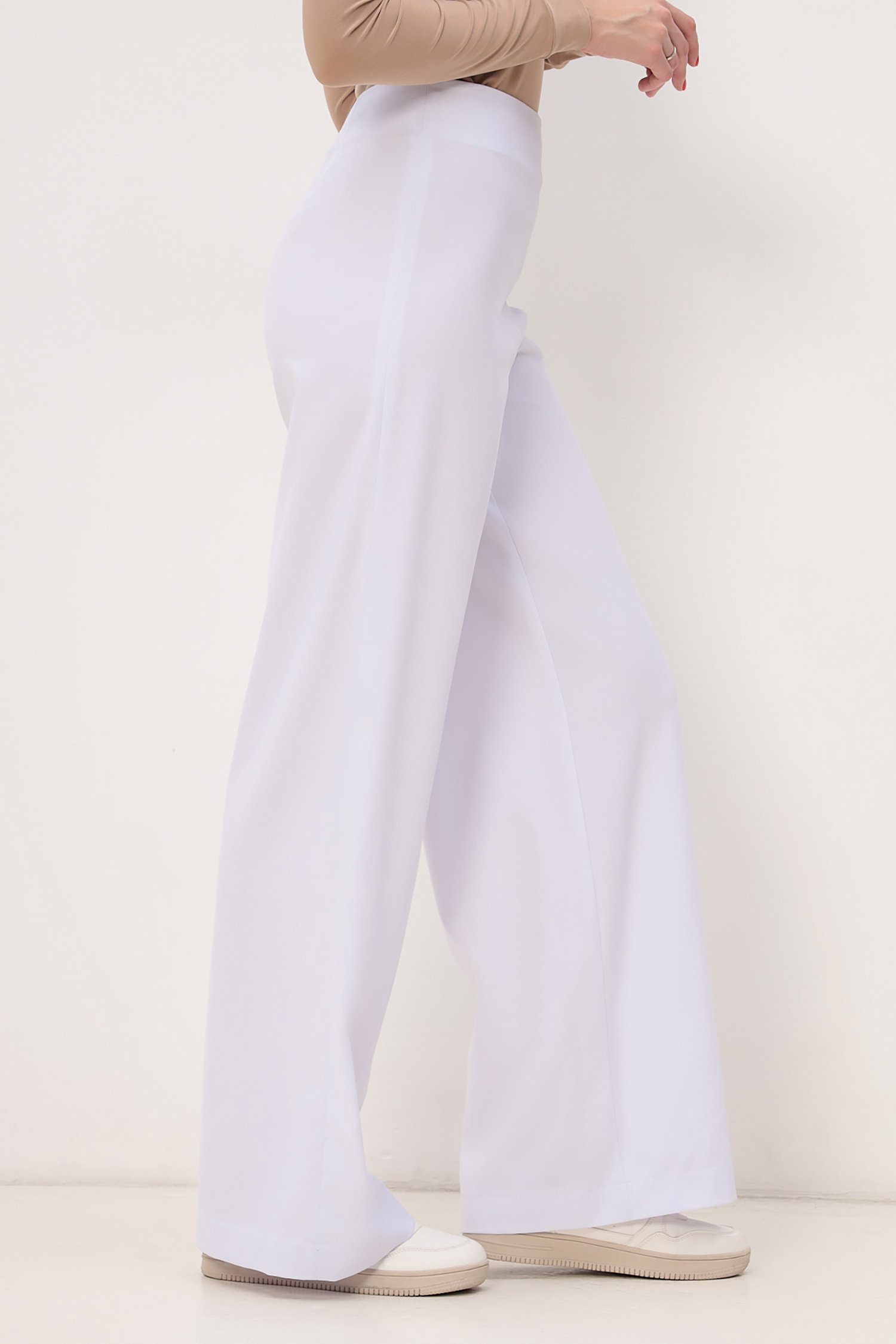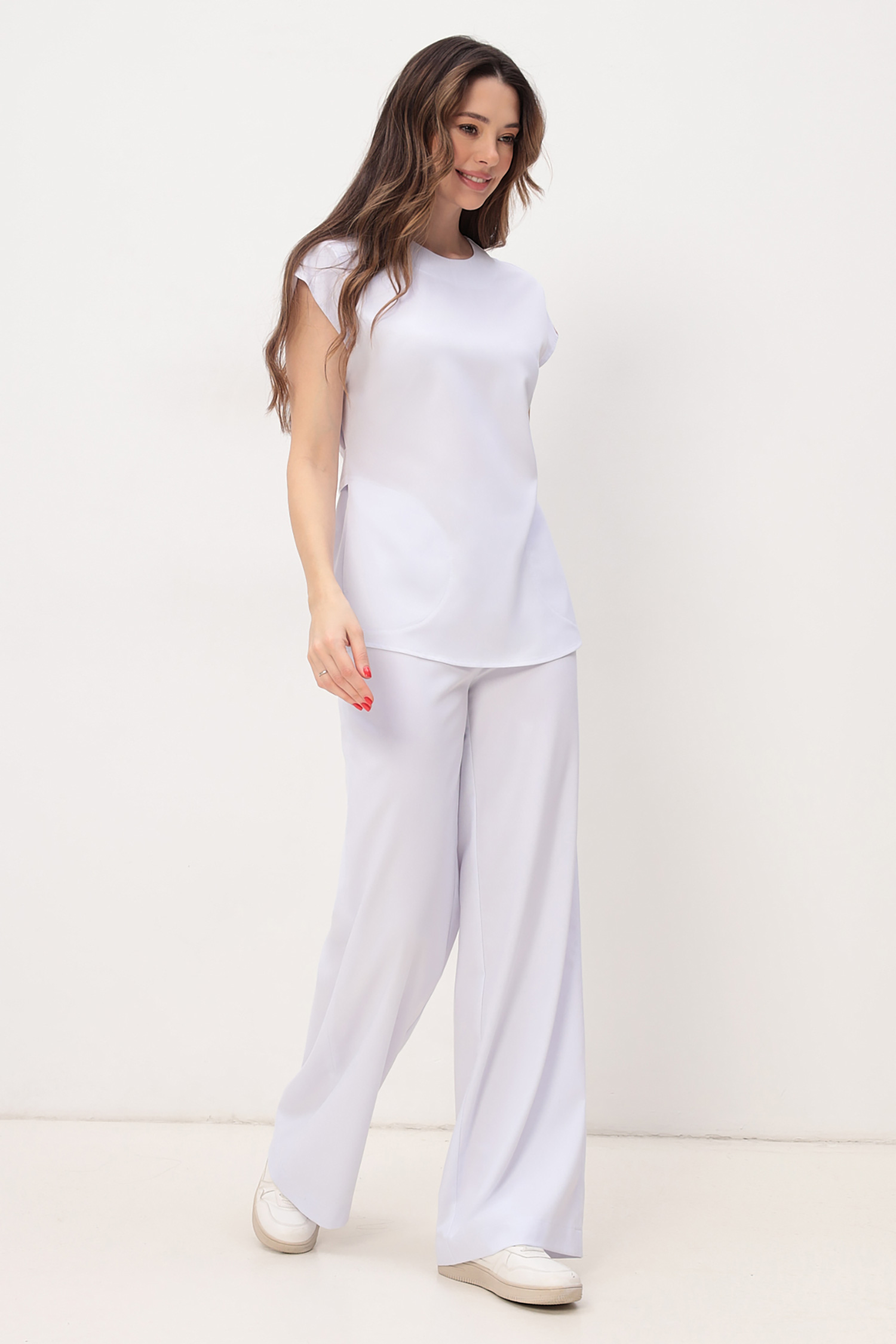 Модные брюки палаццо из мягкой стрейчевой ткани KIARA. Высокая посадка, плотное прилегание в области талии и бедер, застежка в боковом шве на потайную молнию .