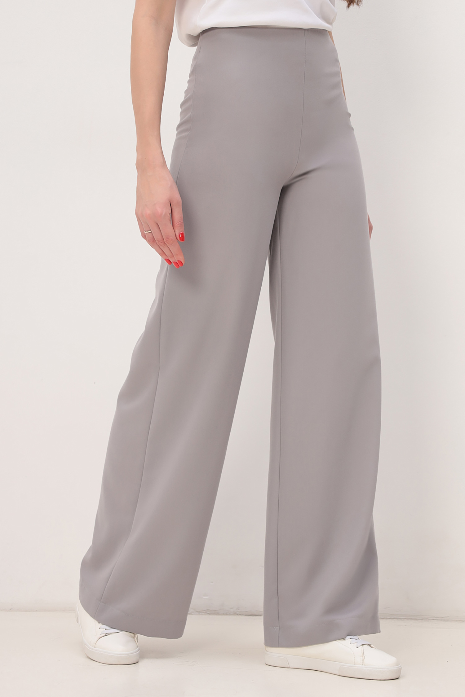 Модные брюки палаццо из мягкой стрейчевой ткани KIARA. Высокая посадка, плотное прилегание в области талии и бедер, застежка в боковом шве на потайную молнию .