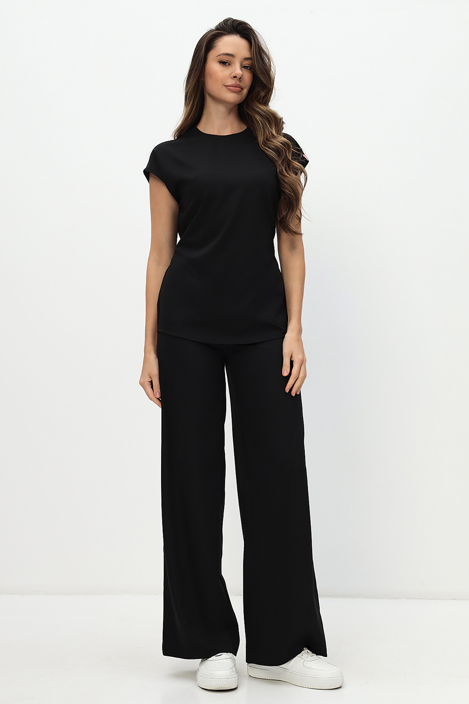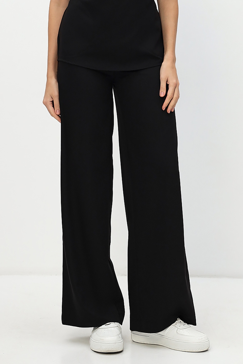 Модные брюки палаццо из мягкой стрейчевой ткани KIARA. Высокая посадка, плотное прилегание в области талии и бедер, застежка в боковом шве на потайную молнию .