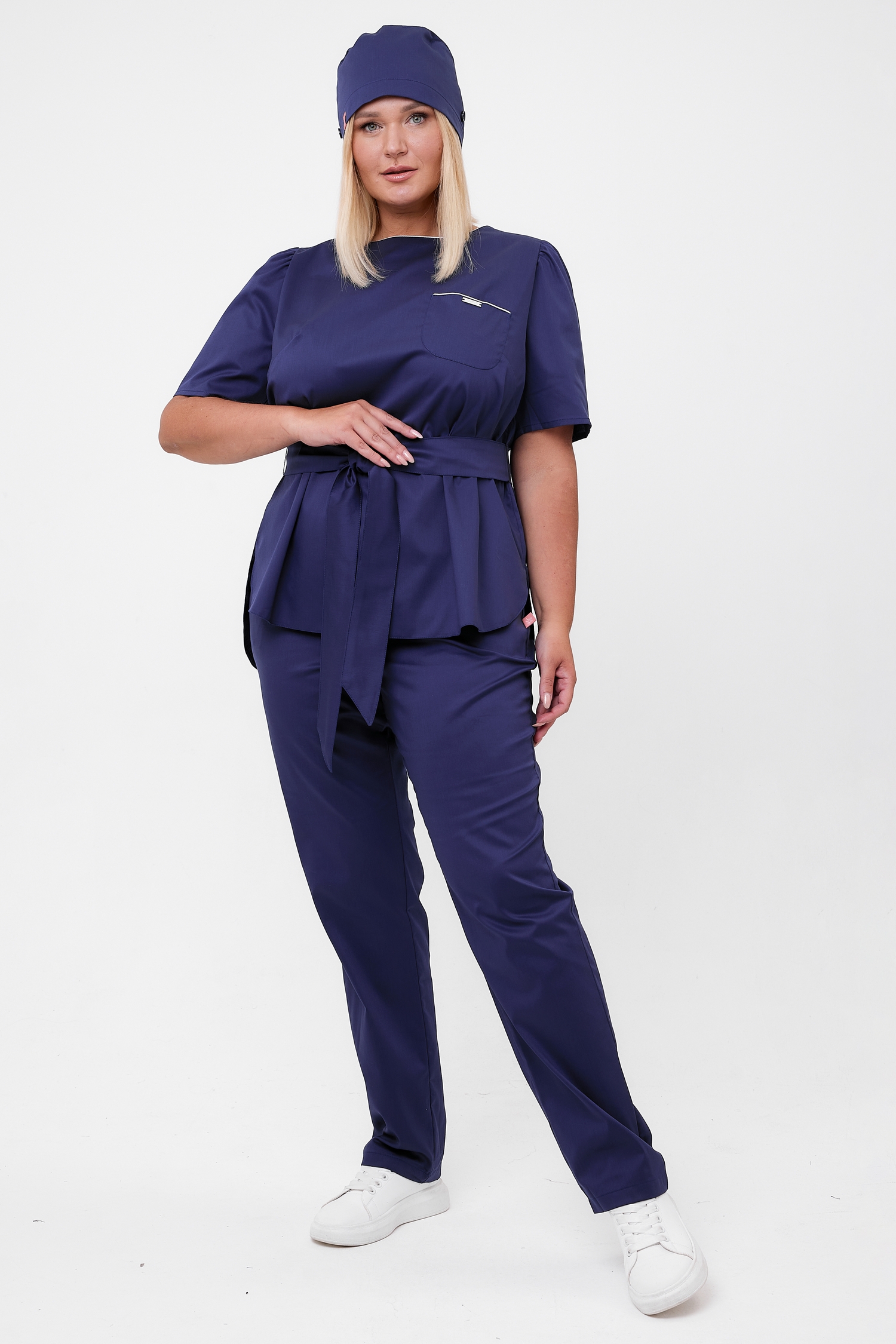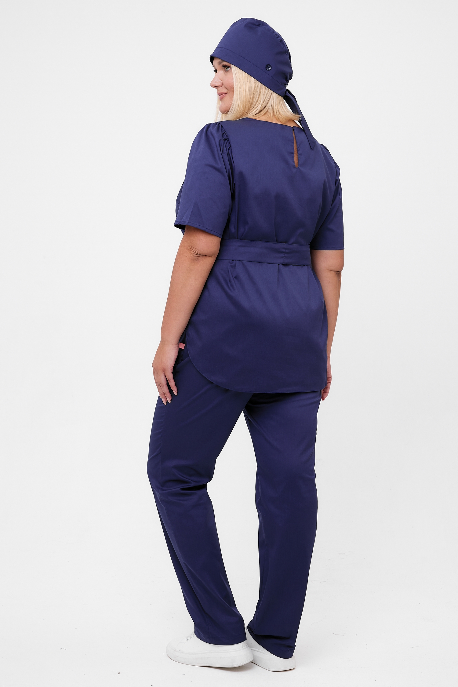 Сзади эластичная выемка, которая высвобождает дополнительный объем, ни одна укладка не пострадает! При этом, широкие завязки надежно фиксируют колпак на голове. Универсальный фасон, одинаково хорошо сочетается с костюмами и халатами.