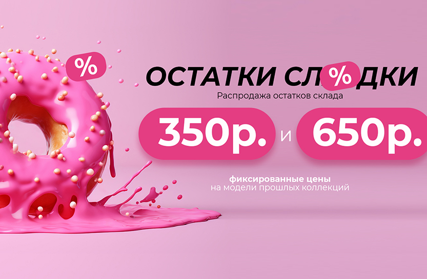 Проводим распродажу остатков склада по фиксированной цене 350 рублей, 650 рублей. Предложение действует для заказов на сумму от 10 000 рублей.
